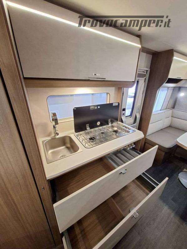 -Porta d?ingresso TABBERT PREMIUM: con sistema di chiusura tipo automobilistico, in un unico pezzo, con doppia guarnizione, sistema di chiusura multipla, cerniere a scomparsa, limitatore di apertura/fermaporta mediante pistone a gas, inclusa finestra con tenda plissettata, vano porta ombrelli integrato, applicazioni decorative pregiate, borsa multiuso nel design TABBERT