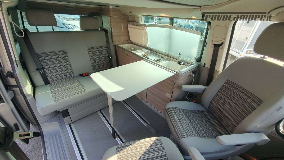 Se stai cercando un van pratico, versatile e pronto a partire, il Volkswagen California T5 del 2015 con 86.000 km è la scelta perfetta. Con 4 posti omologati e 4 posti letto, offre comfort sia durante la guida sia durante il riposo. Due posti letto si ottengono ribaltando la seduta della zona giorno, mentre il letto matrimoniale a soffietto, apribile e richiudibile elettricamente, garantisce comodità e rapidità nella gestione degli spazi.