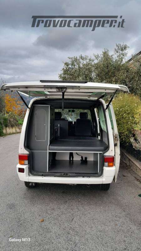 VW Transporter T4 camperizzato del 1995, motore 1.9 Diesel interamente rigenerato nel 2024, perfettamente funzionante e pronto a partire. Acquistato nel 2021, sono la seconda proprietaria. La camperizzazione interna è stata realizzata in Portogallo nel 2018, ma il van è immatricolato in Italia.