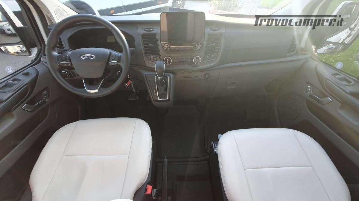 Sotto il cofano, il motore Ford 2.0 da 130 cavalli con cambio automatico garantisce una guida fluida e piacevole, ideale per affrontare qualsiasi percorso con la massima serenità. La cabina, moderna e funzionale, è dotata di climatizzatore automatico e comandi ergonomici, per un’esperienza di guida confortevole in ogni stagione.